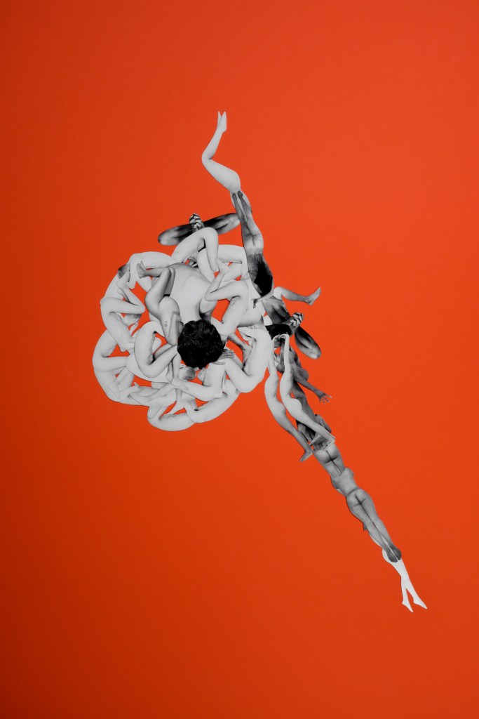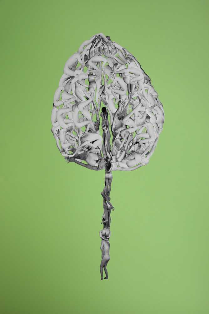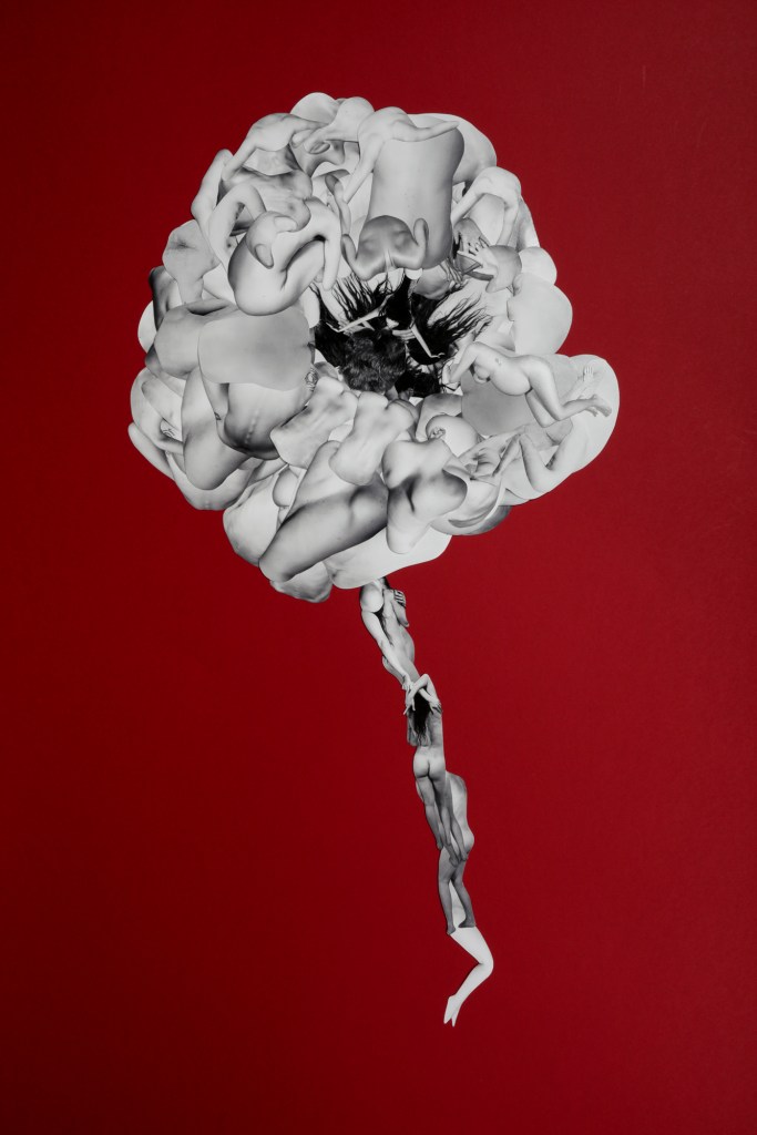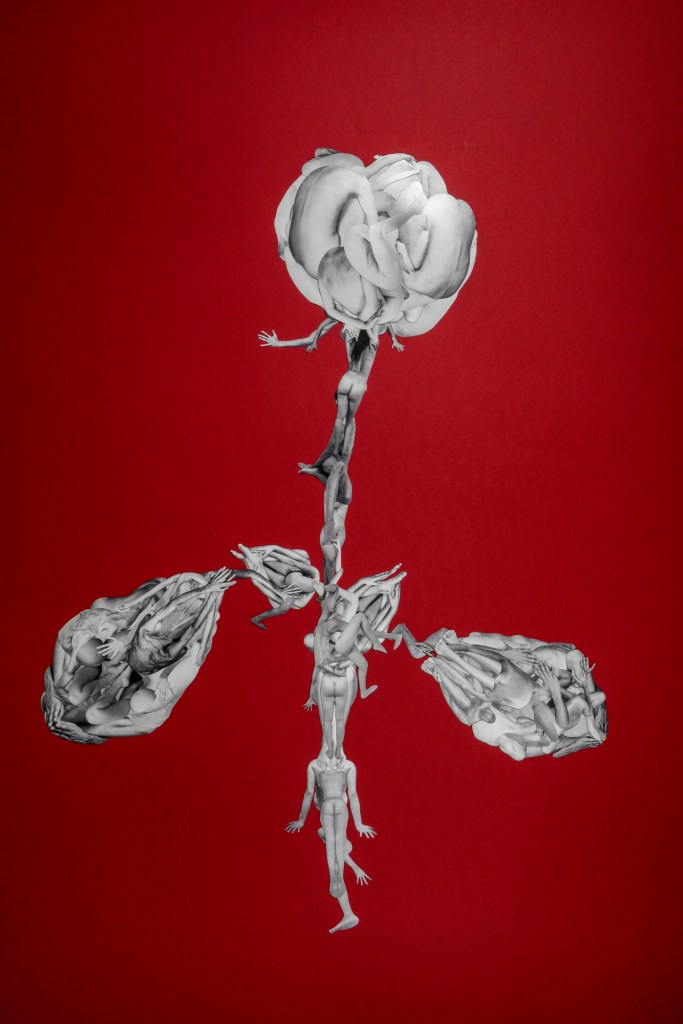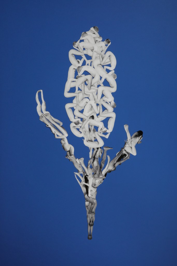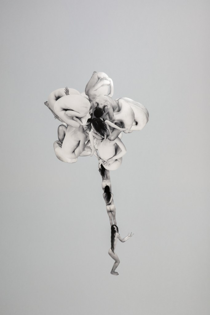 The works are handmade collages, created by cutting out artistic nude Fine Art photographs and recomposing them. Each composition invites contemplation of the bond that unites all living forms. The creation of the collages involved cutting out over 800 images, each characterized by slight variations and small imperfections that reflect their entirely handcrafted nature.