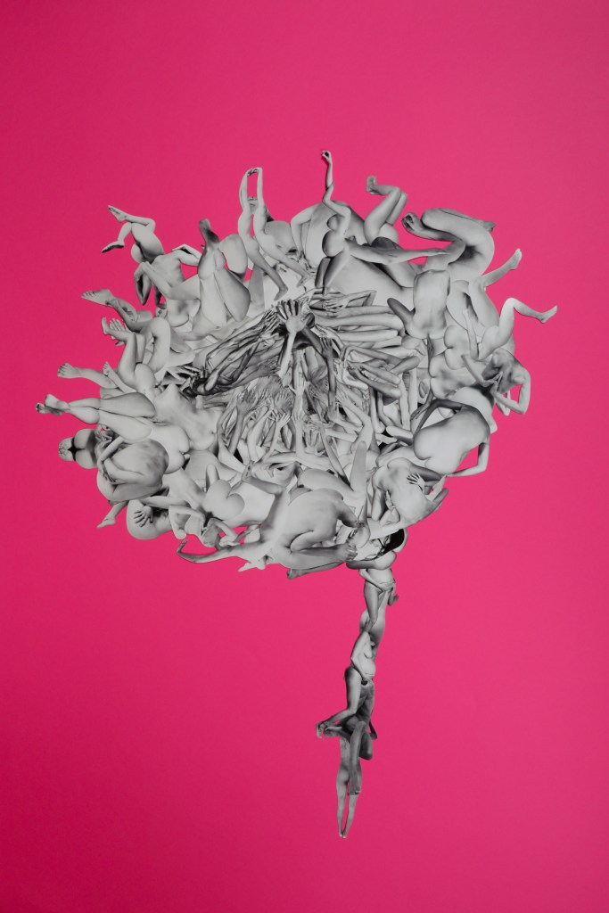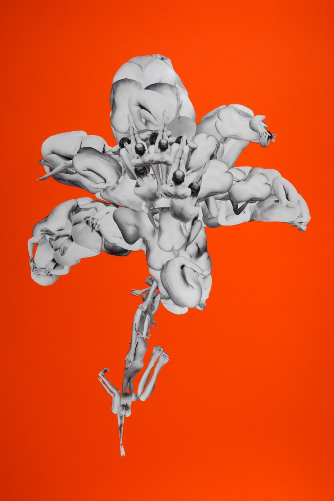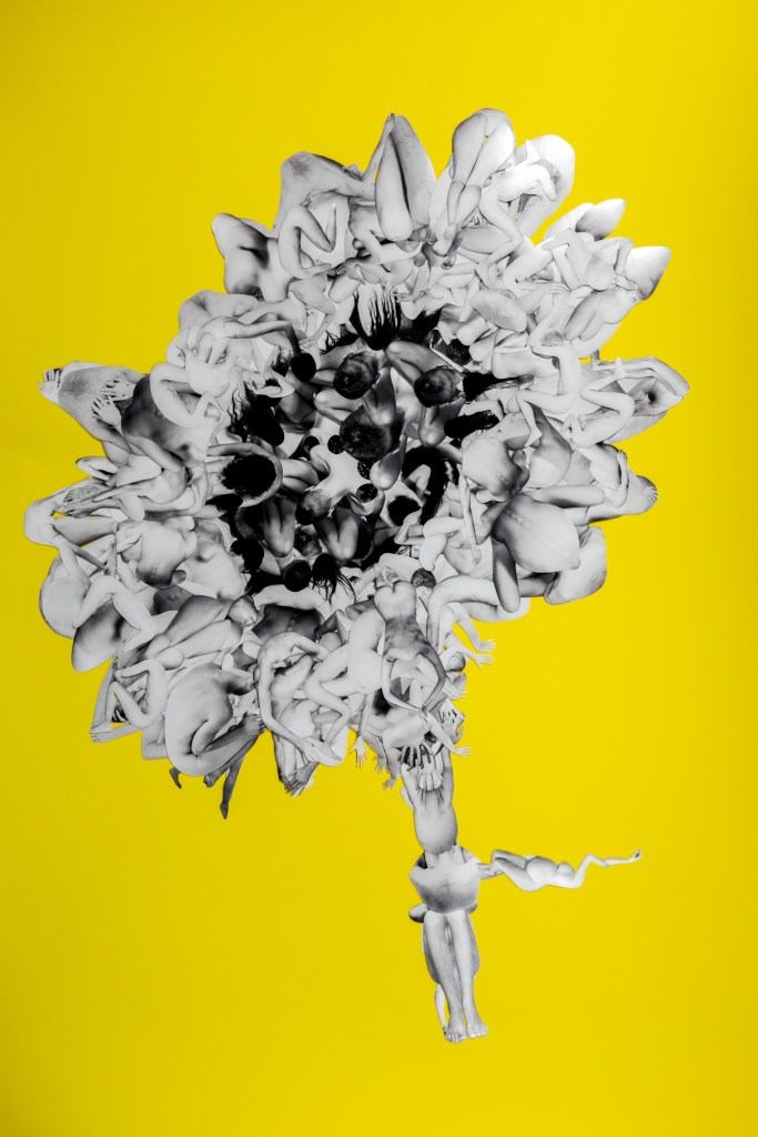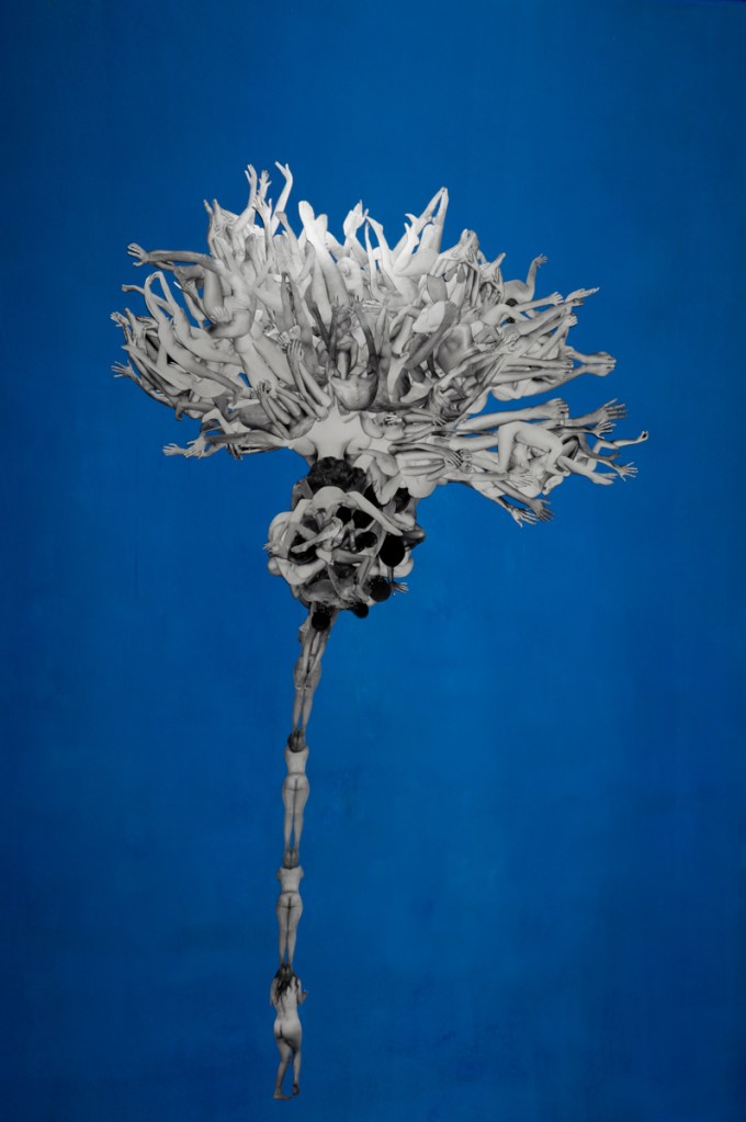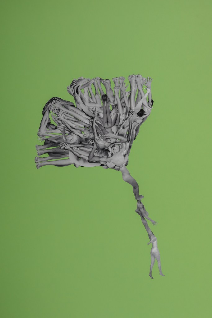 The works are handmade collages, created by cutting out artistic nude Fine Art photographs and recomposing them. Each composition invites contemplation of the bond that unites all living forms. The creation of the collages involved cutting out over 800 images, each characterized by slight variations and small imperfections that reflect their entirely handcrafted nature.